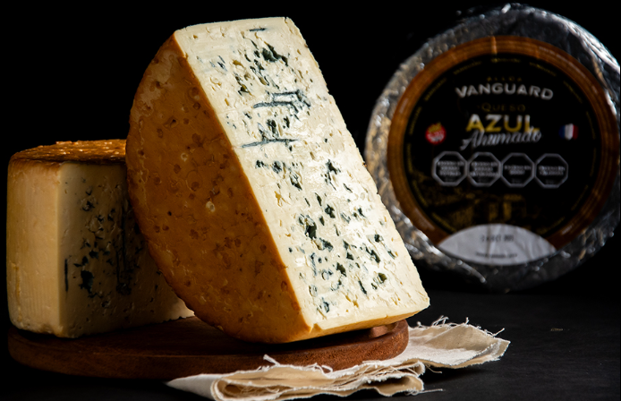 Combina la intensidad característica del queso azul con un sutil toque ahumado, logrado mediante el uso de chips de ciruelo en su proceso de ahumado natural. Tras una maduración de 30 a 45 días, este queso desarrolla un sabor y aroma profundamente intensos, que se complementan con una textura cremosa y suave. Este Queso viene en horma con un peso de 1.850 KG